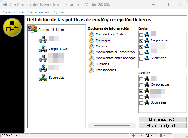 - Grupos destinatarios, que determinan qué ubicaciones reciben la información.